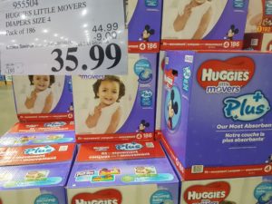 955504 HUGGIES LITTLE MOVERS DIAPERS SIZE 4 Pack of 186 9 00 INSTANT SAVINGS EXPIRES ON 2017 04 16 35 99 by Costco East April 10, 2017, 8:04 pm 955504 HUGGIES LITTLE MOVERS DIAPERS SIZE 4 Pack of 186 ($9.00 INSTANT SAVINGS EXPIRES ON 2017-04-16) $35.99 See more Previous article Costco Canada East Secret Sale Items – Apr. 10, 2017 to Apr. 16, 2017 – Ontario, Quebec & Atlantic Canada Written by Costco East