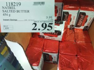 118219 NATREL SALTED BUTTER 454 G 1 00 INSTANT SAVINGS EXPIRES ON 2017 04 16 2 95 by Costco East April 10, 2017, 8:11 pm 118219 NATREL SALTED BUTTER 454 G ($1.00 INSTANT SAVINGS EXPIRES ON 2017-04-16) $2.95 See more Previous article Costco Canada East Secret Sale Items – Apr. 10, 2017 to Apr. 16, 2017 – Ontario, Quebec & Atlantic Canada Written by Costco East