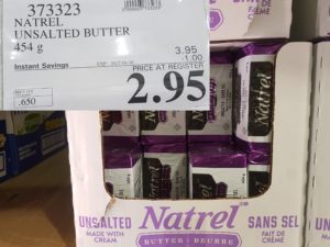 373323 NATREL UNSALTED BUTTER 454 g 1 00 INSTANT SAVINGS EXPIRES ON 2017 04 16 2 95 by Costco East April 10, 2017, 8:11 pm 373323 NATREL UNSALTED BUTTER 454 g ($1.00 INSTANT SAVINGS EXPIRES ON 2017-04-16) $2.95 See more Previous article Costco Canada East Secret Sale Items – Apr. 10, 2017 to Apr. 16, 2017 – Ontario, Quebec & Atlantic Canada Written by Costco East