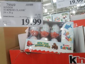 79949 KINDER SURPRISE CLASSIC 24 X 20 G 4 00 INSTANT SAVINGS EXPIRES ON 2017 04 16 19 99 by Costco East April 3, 2017, 6:08 pm 79949 KINDER SURPRISE CLASSIC 24 X 20 G ($4.00 INSTANT SAVINGS EXPIRES ON 2017-04-16) $19.99 See more Previous article Costco Canada East Secret Sale Items – Apr. 3, 2017 to Apr. 9, 2017 – Ontario, Quebec & Atlantic Canada Written by Costco East