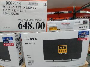 9097243 SONY SMART 4K LED TV 43 CLASS 42 5 KD 43X720E EXPIRES ON 2018 07 12 648 00