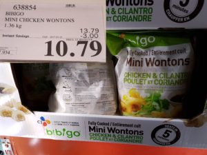 638854 BIBIGO MINI CHICKEN WONTONS 1 36 KG 3 00 INSTANT SAVINGS EXPIRES ON 2017 03 19 10 79 by Costco East March 13, 2017, 4:13 pm 638854 BIBIGO MINI CHICKEN WONTONS 1.36 KG ($3.00 INSTANT SAVINGS EXPIRES ON 2017-03-19) $10.79 See more Previous article Costco Canada East Secret Sale Items – Mar. 13, 2017 to Mar. 19, 2017 – Ontario, Quebec & Atlantic Canada Written by Costco East