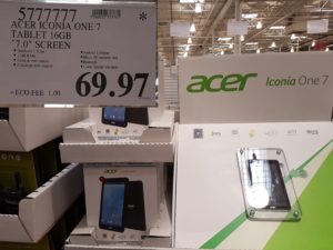 5777777 ACER ICONIA ONE 7 TABLET 16GB 7 0 SCREEN 69 97 by Costco East March 20, 2017, 3:35 pm 5777777 ACER ICONIA ONE 7 TABLET 16GB 7.0″ SCREEN $69.97 See more Previous article Costco Canada East Secret Sale Items – Mar. 20, 2017 to Mar. 26, 2017 – Ontario, Quebec & Atlantic Canada Written by Costco East
