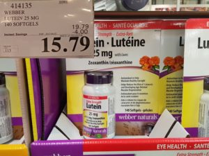 414135 WEBBER LUTEIN 25 MG 140 SOFTGELS 4 00 INSTANT SAVINGS EXPIRES ON 2017 04 02 15 79 by Costco East March 20, 2017, 3:37 pm 414135 WEBBER LUTEIN 25 MG 140 SOFTGELS ($4.00 INSTANT SAVINGS EXPIRES ON 2017-04-02) $15.79 See more Previous article Costco Canada East Secret Sale Items – Mar. 20, 2017 to Mar. 26, 2017 – Ontario, Quebec & Atlantic Canada Written by Costco East