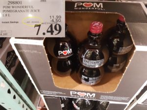 298801 POM WONDERFUL POMEGRANATE JUICE 1 8 L 4 50 INSTANT SAVINGS EXPIRES ON 2017 03 22 7 49 by Costco East March 20, 2017, 3:46 pm 298801 POM WONDERFUL POMEGRANATE JUICE 1.8 L ($4.50 INSTANT SAVINGS EXPIRES ON 2017-03-22) $7.49 See more Previous article Costco Canada East Secret Sale Items – Mar. 20, 2017 to Mar. 26, 2017 – Ontario, Quebec & Atlantic Canada Written by Costco East