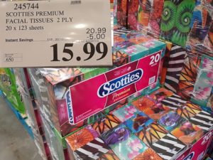 245744 SCOTTIES PREMIUM FACIAL TISSUES 2 PLY 20 X 123 SHEETS 5 00 INSTANT SAVINGS EXPIRES ON 2017 03 26 15 99 by Costco East March 20, 2017, 3:47 pm 245744 SCOTTIES PREMIUM FACIAL TISSUES 2 PLY 20 X 123 SHEETS ($5.00 INSTANT SAVINGS EXPIRES ON 2017-03-26) $15.99 See more Previous article Costco Canada East Secret Sale Items – Mar. 20, 2017 to Mar. 26, 2017 – Ontario, Quebec & Atlantic Canada Written by Costco East