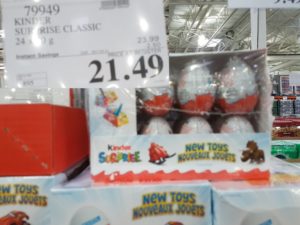 79949 KINDER SURPRISE CLASSIC 24 X 20 G 2 50 INSTANT SAVINGS 21 49 by Costco East March 27, 2017, 4:05 pm 79949 KINDER SURPRISE CLASSIC 24 X 20 G ($2.50 INSTANT SAVINGS) $21.49 See more Previous article Costco Canada East Secret Sale Items – Mar. 27, 2017 to Apr. 2, 2017 – Ontario, Quebec & Atlantic Canada Written by Costco East