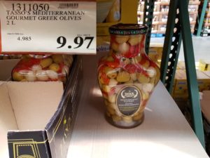 1311050 TASSO S MEDITERRANEAN GOURMET GREEK OLIVES 2 L 9 97 by Costco East March 6, 2017, 7:01 pm 1311050 TASSO’S MEDITERRANEAN GOURMET GREEK OLIVES 2 L $9.97 See more Previous article Costco Canada East Secret Sale Items – Mar. 6, 2017 to Mar. 12, 2017 – Ontario, Quebec & Atlantic Canada Written by Costco East