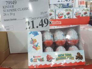 79949 KINDER SURPRISE CLASSIC 24 X 20 G 2 50 INSTANT SAVINGS EXPIRES ON 2017 05 05 21 49 by Costco East May 4, 2017, 3:17 pm 79949 KINDER SURPRISE CLASSIC 24 X 20 G ($2.50 INSTANT SAVINGS EXPIRES ON 2017-05-05) $21.49 See more Previous article Costco Canada East Secret Sale Items – May 1, 2017 to May 7 2017 – Ontario, Quebec & Atlantic Canada Written by Costco East Comments Our site Facebook Leave a Reply Cancel replyYour email address will not be published. Required fields are marked *Comment * Name * Email * Website Loading… 0
