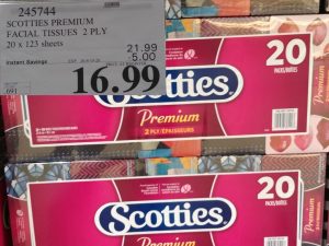 245744 SCOTTIES PREMIUM FACIAL TISSUES 2 PLY 20 X 123 SHEETS 5 00 INSTANT SAVINGS EXPIRES ON 2018 10 28 16 99
