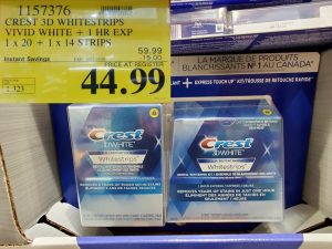 1157376 CREST 3D WHITESTRIPS VIVID WHITE 1 HR EXP 1 x 20 1 x 14 STRIPS 15 00 INSTANT SAVINGS EXPIRES ON 2021 01 03 44 99 by Costco East December 7, 2020, 1:00 pm 1157376 CREST 3D WHITESTRIPS VIVID WHITE + 1 HR EXP 1 x 20 + 1 x 14 STRIPS ($15.00 INSTANT SAVINGS EXPIRES ON 2021-01-03) $44.99 See more Previous article Costco Canada Flyer sales & sale Items Dec 7th – 13th 2020 – Ontario, Quebec & Atlantic Canada Written by Costco East Comments Our site Facebook Leave a Reply Cancel replyYour email address will not be published. Required fields are marked *Comment * Name * Email * Website Loading… 0