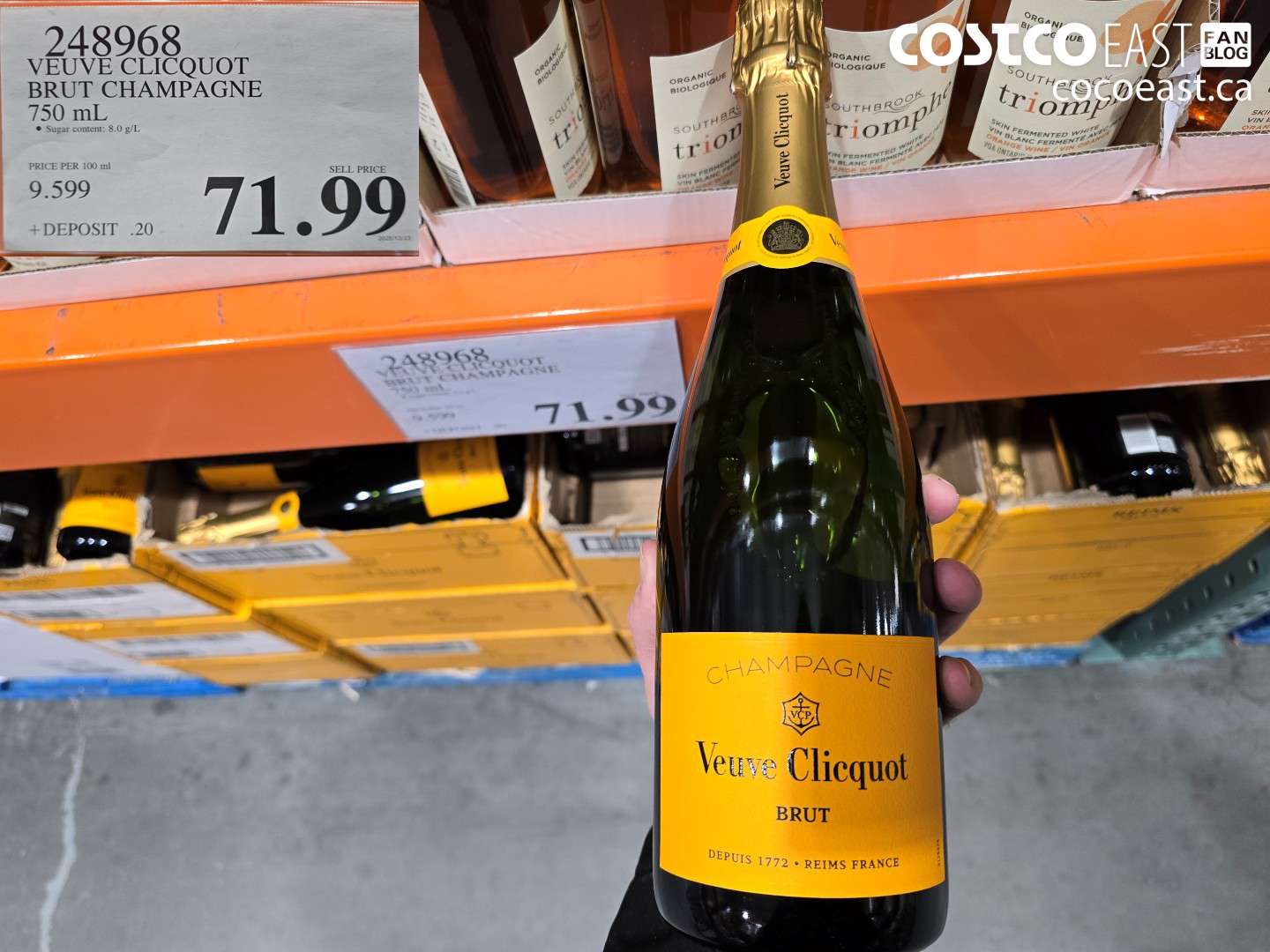 1219929 WHITEHAVEN SAUVIGNON BLANC 750 ml $18.991887126 INNISKILLIN AUTUMN RIESLING, VQA 750 ml $13.491988595 PONDVIEW VIDAL ICEWINE, VQA 200 mL $16.991887072 THE GOAT LADY CHARDONNAY, VQA 750 ml $14.991907259 STREWN BARREL AGED CHARDONNAY 750 mL $15.991944646 WAYNE GRETZKY CHARDONNAY, VQA 4 L $49.991943003 CHATEAU DES CHARMES CHARDONNAY, VQA 750 mL $14.491959176 SOUTHBROOK TRIOMPHE ORANGE WINE VQA 750 ML $24.99248968 VEUVE CLICQUOT BRUT CHAMPAGNE 750 mL $71.99723434 BATASIOLO BOSC D’LA REI MOSCATO 750 mL $17.991982453 MASI MODELLO PROSECCO DOC BRUT 750 mL $14.821917712 RUFFINO CHIANTI 1.5 L $26.99