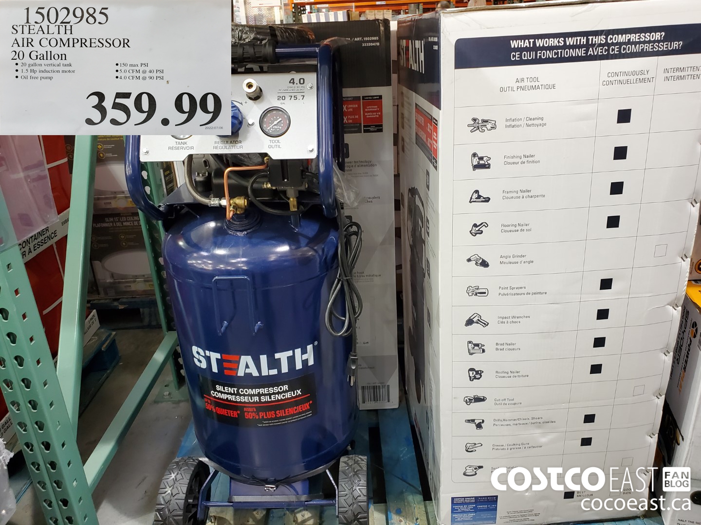 1502985 STEALTH AIR COMPRESSOR 20 Gallon 359 99 by July 20, 2022, 5:06 pm 1502985 STEALTH AIR COMPRESSOR 20 Gallon $359.99 See more Previous article Costco East Garage, Workshop & Elecrtrical Super Post: July 20 2022 2022 – Ontario, Quebec & Atlantic Canada Written by Comments Our site Facebook Leave a Reply Cancel replyYour email address will not be published. Required fields are marked *Comment * Name * Email * Website Loading… 0