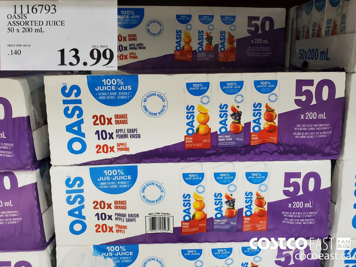 1116793 OASIS ASSORTED JUICE 50 x 200 mL 13 99