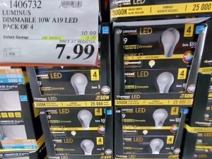 1406732 LUMINUS DIMMABLE 10W A19 LED PACK OF 4 3 00 INSTANT SAVINGS EXPIRES ON 2020 05 10 7 99