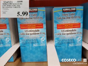 534521 KIRKLAND SIGNATURE LOW DOSE 81MG ASA 365 COATED TABLETS 5 99 by May 4, 2022, 10:44 am 534521 KIRKLAND SIGNATURE LOW DOSE 81MG ASA 365 COATED TABLETS $5.99 See more Previous article Costco Pharmacy & Personal care Super Post May 4th 2022 – Ontario, Quebec & Atlantic Canada Written by Comments Our site Facebook Leave a Reply Cancel replyYour email address will not be published. Required fields are marked *Comment * Name * Email * Website Loading… 0