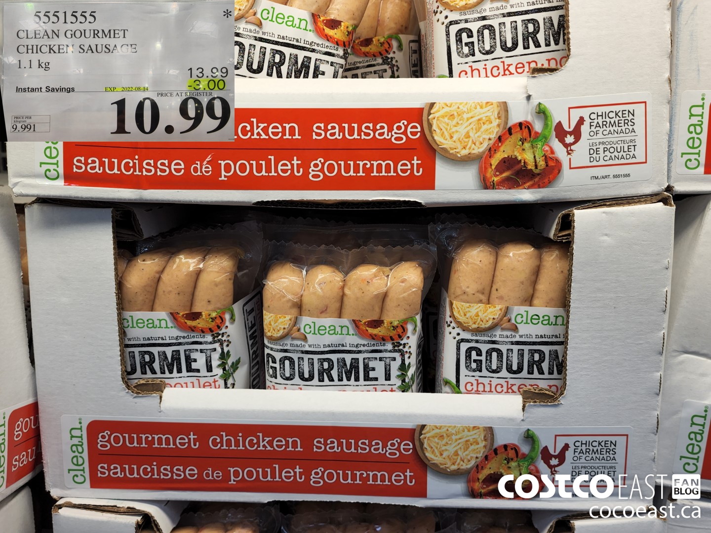 5551555 CLEAN GOURMET CHICKEN SAUSAGE 1 1 kg 3 00 INSTANT SAVINGS EXPIRES ON 2022 08 14 10 99 by August 8, 2022, 12:10 pm 5551555 CLEAN GOURMET CHICKEN SAUSAGE 1.1 kg ($3.00 INSTANT SAVINGS EXPIRES ON 2022-08-14) $10.99 See more Previous article Costco sale Items & Flyer sales August 8th – 14th 2022 – Ontario, Quebec & Atlantic Canada Written by Comments Our site Facebook Leave a Reply Cancel replyYour email address will not be published. Required fields are marked *Comment * Name * Email * Website Loading… 0