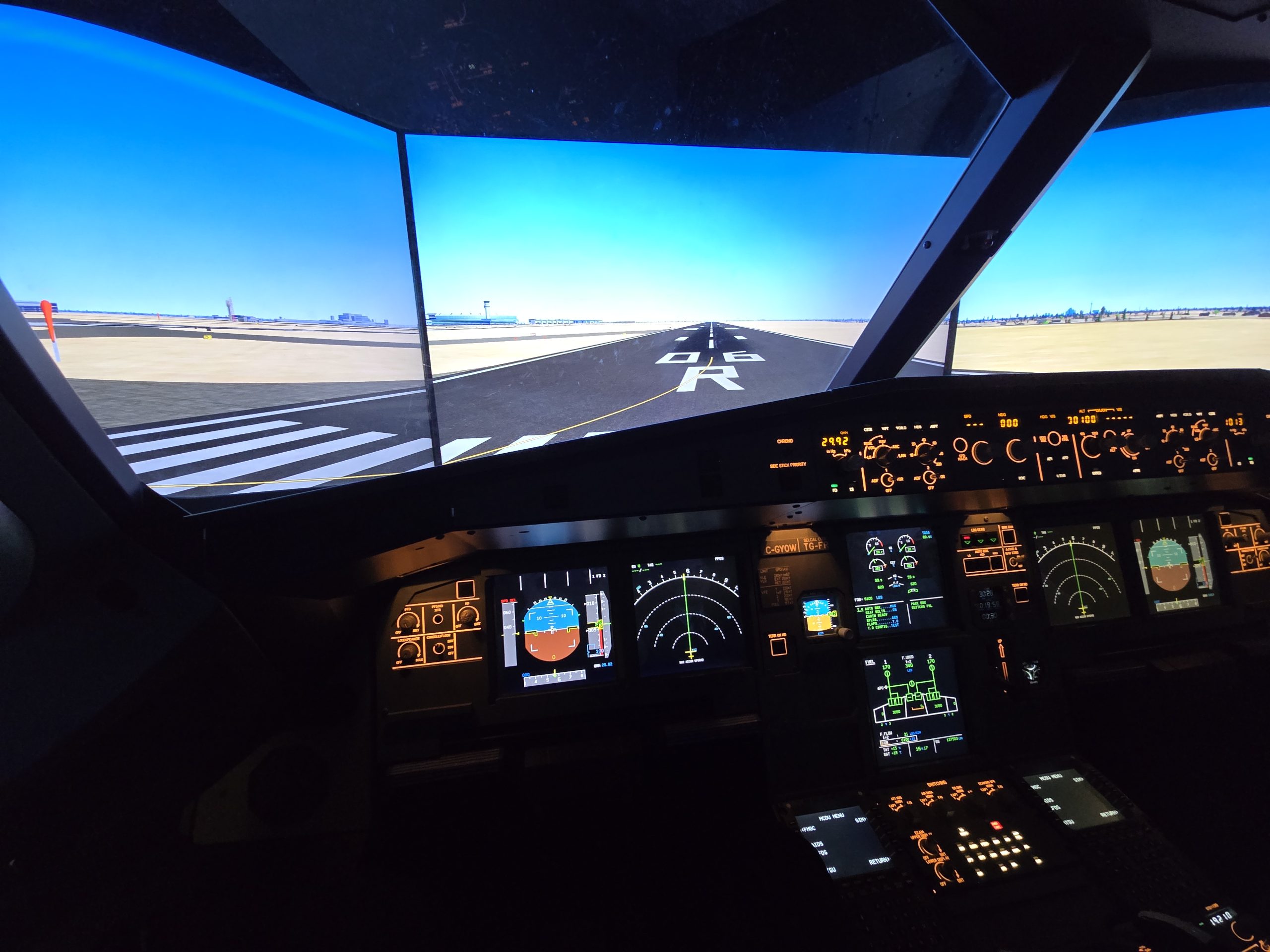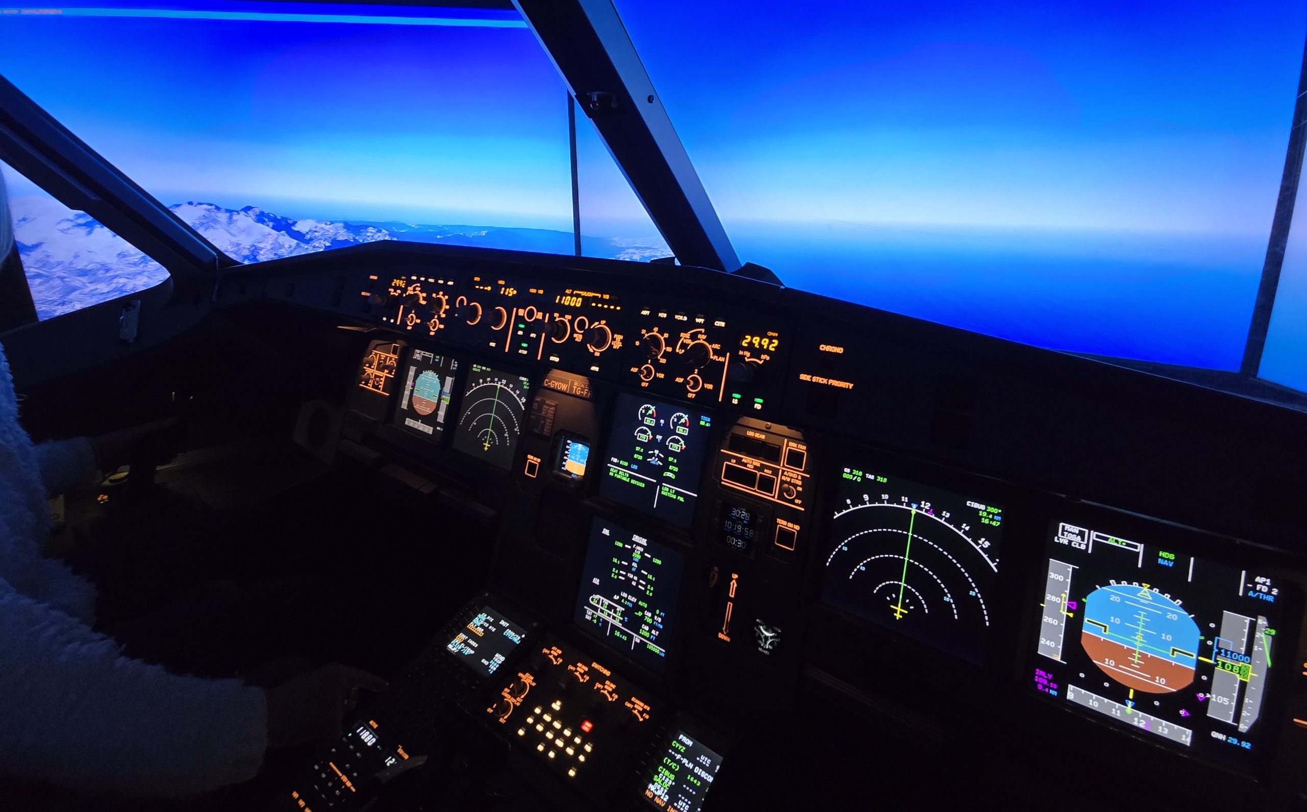 We had a great time in Ottawa this weekend, part of the trip was to go to a place called Avia Sim, which is a flight simulator just outside of the city. You get to sit in a 1:1 recreation of an airbus A320 cockpit, and learn how to take off, fly, and land the plane… I mean the short version of learning that stuff, of course, as much as you can learn in an hour and a half. It was pretty cool, and if you don’t turn around you’d almost forget you’re not in the cockpit.
