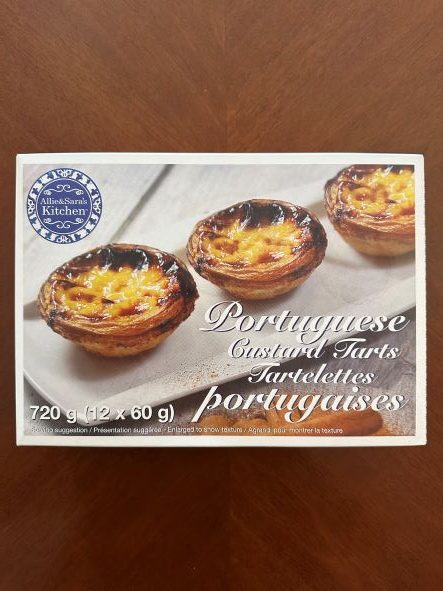 I was really looking forward to these tarts but sadly was disappointed. The edges of the tart were golden brown and crispy but the rest of the tart pastry was very soggy and not that flaky. There’s a lot of filling so the closer the pastry is to the filling the soggier it is. The custard on the inside was a bit different than I expected, firmer (not very custard-like) and the flavor was extremely sweet. I’ve had Portuguese Custard Tarts from a local bakery here that tasted a lot different which is surprising since these are made in Portugal!