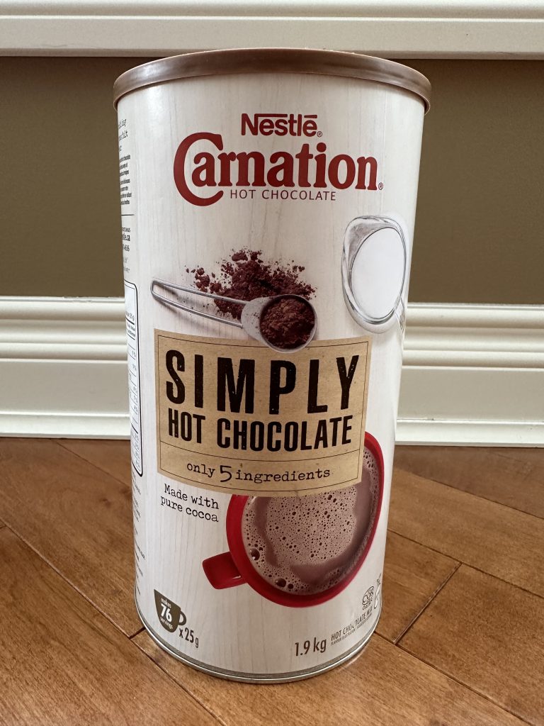 Both Sean and I really liked this hot chocolate! We were surprised by how nice it tasted even with water. The flavor is rich and creamy and I think a bit less sweet than other hot chocolate I’ve tried. The hot chocolate mixed easily and there weren’t any clumps. I think this would make really good mochas if those are something you enjoy! I would choose the Carnation Hot Chocolate compared to the Tim Horton’s Hot Chocolate from Costco.