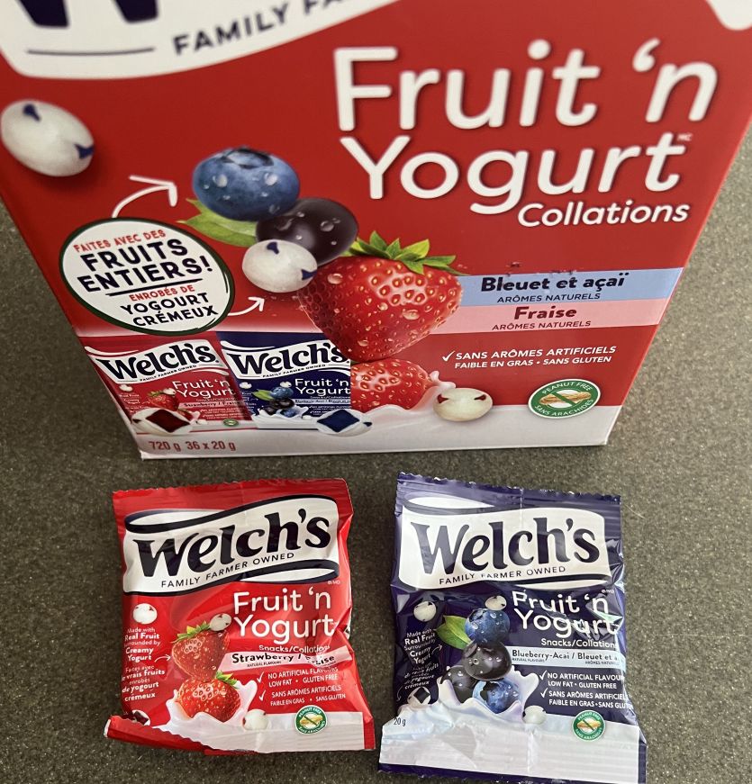 I recently saw that they were sampling these Welch’s Fruit and Yogurt Snacks at my Costco and decided to pick up a box to try after I witnessed a few people raving about them. The box has 36 packs and I paid $16.99 Canadian for it.